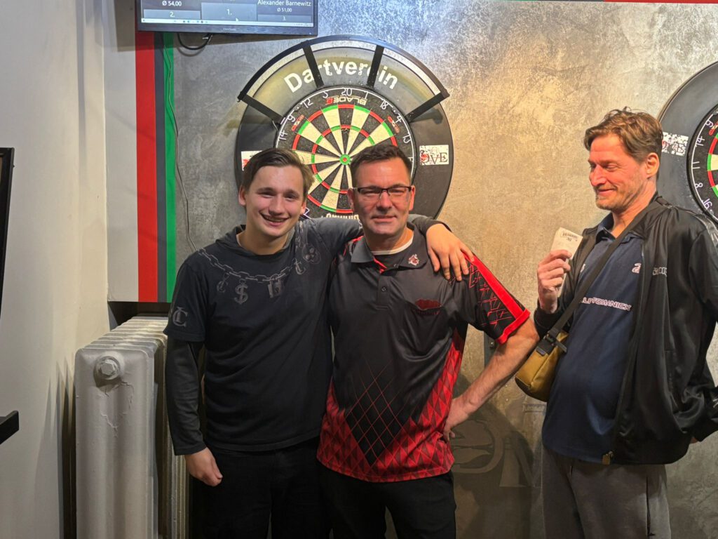 Aber zunächst will ich das letzte Turnier kurz zusammenfassen. 26 Darter fanden sich am Freitag ein. Darunter auch die Ex-DVEler Gaby und Toby. Und beinahe hätte es ein Endspiel Gewinnerseite Gaby gegen Toby gegeben. Aber Beide verloren knapp im Halbfinale 3:2. Am Ende konnte Toby das Endspiel über die Verliererrunde erreichen, verlor dort aber ein weiteres Mal gegen Jan-Christoph 3:2. 3ter wurde Barny vor Max. Den 5ten Platz teilen sich Gaby und Marco. Herzlichen Glückwunsch!