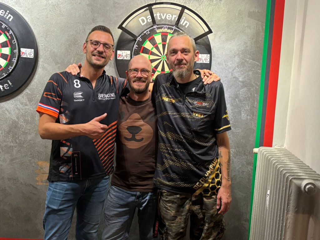 Intern gab es wie zu jeder neuen Spielzeit einige Veränderungen zwischen den einzelnen Kadern, aber auch klassische Ab- bzw. Neuzugänge. Bei uns waren mit Nikkels, Lennart und David direkt drei Newcomer beim ersten Pflichtspiel mit dabei. Ebenso kehrte Dennis nach einer Saison Auszeit wieder in die Mannschaft zurück. Die beiden Kapitäne Alex und Daniel sowie die zwei Neuzugänge Nikkels und Lennart kamen im ersten Einzelblock zum Einsatz. Während die arrivierten Spieler besonders im Scoring zu ihren jeweiligen Gegnern abreißen lassen mussten, kamen Nikkels und Lennart nach 0:2 Rückstand (und überlebten Matchdarts) noch zurück und drehten die Matches komplett zu ihren Gunsten.